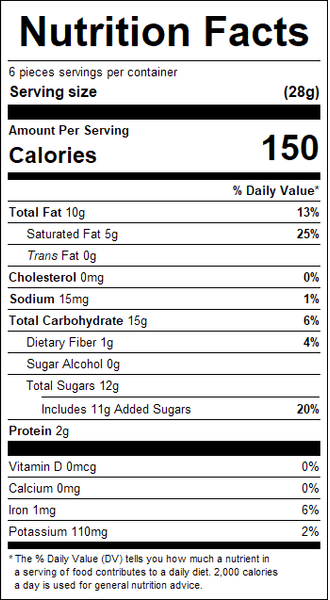 "ingredients": "Milk Chocolate (Sugar, Cocoa Butter, Chocolate Liquor, Milk, Nonfat Milk, Butterfat, Contains 2% Or Less Of Soy Lecithin [An Emulsifier], Salt, Natural Vanilla Flavor), Coffee Beans, Water, Gum Arabic, Confectioners Glaze, Modified Starch (Tapioca), Vegetable Oil (Coconut Oil, Canola Oil).<br /><br />Contains Milk, Soy.<br /><br />Manufactured In A Plant That Processes Peanuts, Tree Nuts, Soy, Wheat (Gluten), Eggs And Dairy Products.<br /><br />Made with Bioengineered Ingredient(s).",