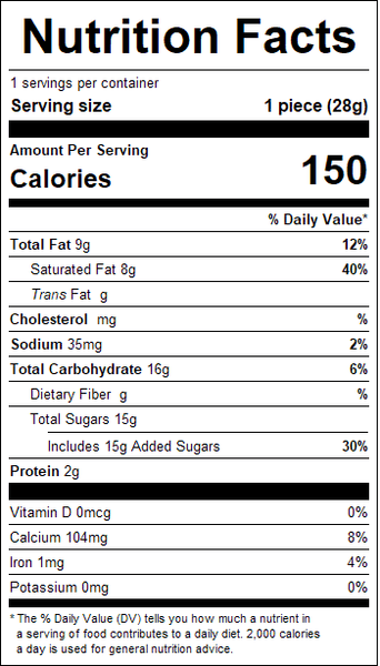 "ingredients": "Cocoa Lite Confectionery (sugar, vegetable oil [palm kernel oil, hydrogenated palm kernel and cottonseed oils], nonfat dry milk, cocoa, milk, glyceryl lacto esters of fatty acids, soy lecithin, and salt).Contains milk and soy.Contains bioengeneered ingredients.",