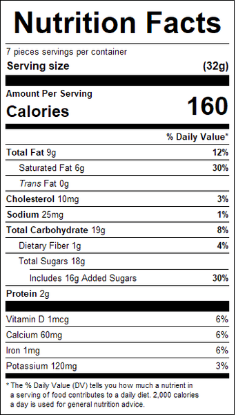 "ingredients": "Milk Chocolate [Sugar; Milk; Chocolate; Cocoa Butter; Milk Fat; Lecithin (Soy); Natural Flavor]<br /><br />Contains: Milk And Soy <br /><br /><br />Made with Bioengineered Ingredient(s).",