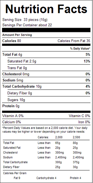 "ingredients": "Sugar, Cocoa Butter, Milk, Chocolate Liquor, Soy Lecithin, Vanilla.Contains milk and soy.",