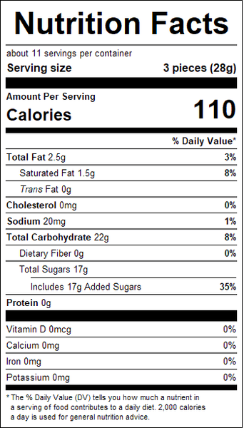 "ingredients": "Milk Chocolate (sugar, cocoa butter, milk, unsweetened chocolate, soy lecithin [an emulsifier], salt), Corn Syrup, Sugar, Water, Pectin, Contains 1T or less of: Natural Flavor, Malic Acid, Sodium Citrate, Yellow #6.Contains milk, soy. May contain: egg, almond, peanut.",