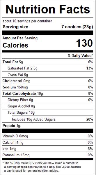 "ingredients": "Enriched Flour (wheat flour, niacin, reduced iron, thiamine mononitrate, riboflavin, folic acid), Sugar, Interestierified Soybean Oil, High Fructose Corn Syrup, Dextrose, Seasoning Blend (spices, salt), Caramel Color, Cornstarch, Salt, Baking Soda, Soy Lecithin, Ammonium Bicarbonate, Natural Flavors.Contains wheat, soy.Made in a bakery that uses peanuts, coconut, pecans, milk & egg.<br /><br />Made with Bioengineered Ingredient(s).",