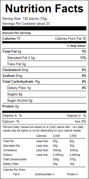 "ingredients": "Sugar, Chocolate Liquor, Cocoa Butter, Butterfat (milk), Soy Lecithin, Vanilla.Contains milk and soy.",