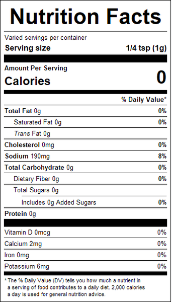 Natural Cajun Seasoning with no added MSG will add an authentic Cajun flavor to meats, vegetables, soups and rice with this well rounded blend of Sea Salt, herbs and spices.
