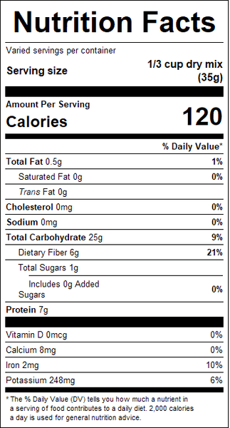 "ingredients": "Red Lentils, Green Split Peas, Yellow Split Peas, Lentils, Long Grain Brown Rice, Wild Rice.<br />Processed on equipment that also processes: Crustacean Shellfish, Egg, Fish, Milk, Peanut, Sesame, Soy, Tree Nuts (Almond, Brazil Nut, Cashew, Coconut, Filbert (Hazelnut), Macadamia Nut, Pecan, Pine Nut, Pistachio, Walnut) and Wheat.",