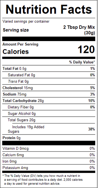 "ingredients": "Cane Sugar, Corn Starch, Maltodextrin, Egg Yolks, Natural Flavors, Organic Vanilla Flavor, Canola Oil, Sea Salt, Beta Carotene (color), Butter Powder (butter [cream, salt], dry buttermilk), Buttermilk Solids (whey solids, buttermilk powder, nonfat dry milk), Natural Butter Flavor.<br />Contains Egg, Milk.<br />Processed on equipment that also processes: Crustacean Shellfish, Egg, Fish, Milk, Peanut, Sesame, Soy, Tree Nuts (Almond, Brazil Nut, Cashew, Coconut, Filbert (Hazelnut), Macadamia Nut, Pecan, Pine Nut, Pistachio, Walnut) and Wheat.",
