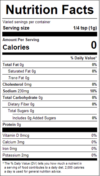 "ingredients": "Sea Salt, Cane Sugar, Dried Roasted Garlic, Dried Onion, Canola Oil, Parsley, Silicon Dioxide (flow agent), Ascorbic Acid (preservative), Natural Flavors.<br />Processed on equipment that also processes: Crustacean Shellfish, Egg, Fish, Milk, Peanut, Sesame, Soy, Tree Nuts (Almond, Brazil Nut, Cashew, Coconut, Filbert (Hazelnut), Macadamia Nut, Pecan, Pine Nut, Pistachio, Walnut) and Wheat.",