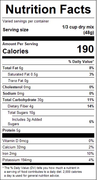 Natural Swiss-Style Muesli is a nutritious all-natural cereal that packs a big crunch. Complete with almonds, pumpkin seeds, raisins, craisins, dates and a seven grain mix, this cereal is easy to cater to anyone's taste. Try adding some honey, molasses or even a spoonful of sugar if you like your cereal sweet. Make muesli cereal even healthier by slicing fresh fruit directly into your bowl. Serve this cereal hot.