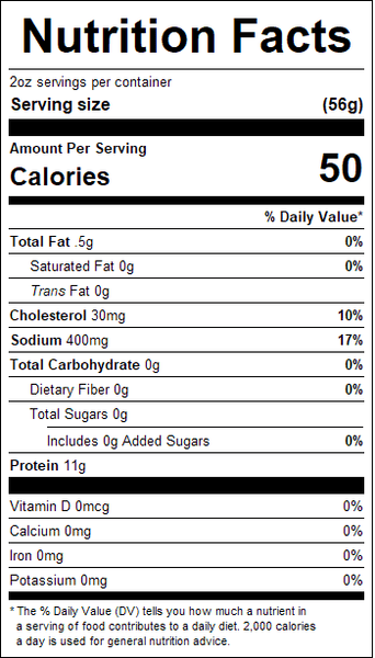 "ingredients": "Chicken Breast, Water, Salt, Dextrose, Sodium Phosphates, Garlic Powder, Natural Flavorings. Coated With: Spices, Dehydrated Red Bell Peppers, Paprika, Parsley, Dehydrated Garlic",