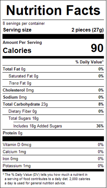 There's no peeling involved to get to these juicy orange slices! These gummies are sanded with sugar and have a fresh orange taste! Buy Orange Slices in retail ready containers at Dutch Valley Foods.