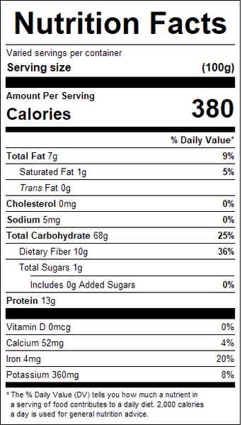 "ingredients": "Whole Grain Oats",