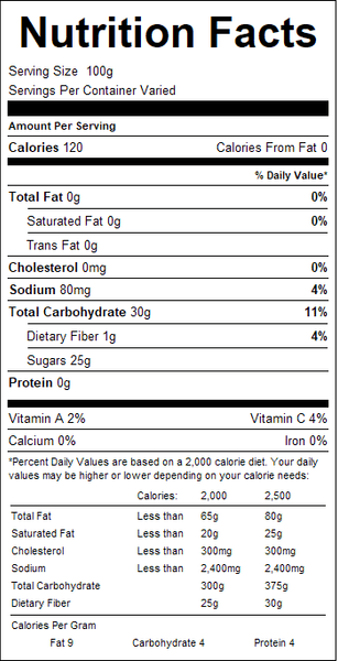 "ingredients": "Peaches, High Fructose Corn Syrup, Water, Modified Food Starch. Contains 2% or less of: Ascorbic Acid, Cellulose Gel, Cellulose Gum, Citric Acid, Color Added (FD&C Yellow 5 and Yellow 6), Glycerin, Natural Flavor, Potassium Sorbate, Salt, Sodium Benzoate, Tartaric Acid.",