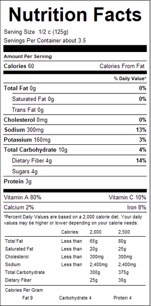"ingredients": "Peas, Water, Carrots, Sugar, Salt.",