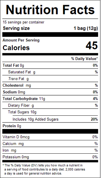 "ingredients": "Glucose, Maltodextrin, Magnesium Stearate, Malic Acid, Artificial Flavor, Artificial Color (FD&C Red 40, Yellow 5, Blue 1), and Carnauba Wax.",