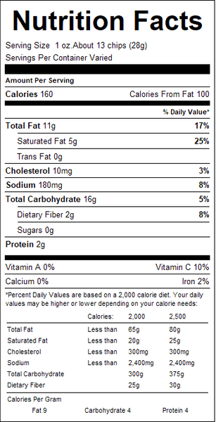 "ingredients": "Whole Fresh Potatoes, Lard, Salt, TBHQ added to protect flavor.",