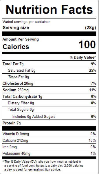 "ingredients": "Cultured Pasteurized Milk, Salt And Enzymes. <br /><br />Contains: Milk",