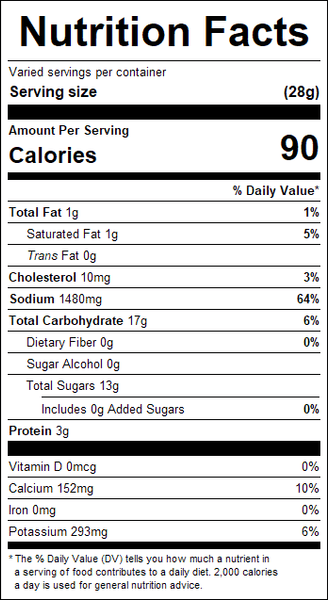 "ingredients": "Buttermilk Solids (whey solids, buttermilk powder, nonfat dry milk), Dextrose, Whole Milk Powder, Sea Salt, Dried Onion, Salt, Monosodium Glutamate, Citric Acid (acidifier), Dried Garlic, Whey, Chicken Flavoring (dextrose, salt, monosodium glutamate, lactose [milk], potato flour, sunflower oil, celery, turmeric [color], onion powder, sunflower lecithin, parsley, and herbs), Dried Sour Cream Powder (sour cream (cultured cream, nonfat milk)), Parsley, Corn Starch, Dried Roasted Garlic, Nonfat Dry Milk, Silicon Dioxide (flow agent), Lactic Acid (acidifier), Maltodextrin, Swiss Cheese Flavor (maltodextrin, whey solids, natural swiss cheese flavor, salt), Butter Powder (butter [cream, salt], dry buttermilk), Ascorbic Acid (preservative), Natural and Artificial Flavors, Natural and Artificial Flavors (contains soy), Natural Butter Flavor, Beta Carotene (color), Canola Oil.<br />Contains Milk, Soy.<br />Processed on equipment that also processes: Crustacean Shellfish, Egg, Fish, Milk, Peanut, Sesame, Soy, Tree Nuts (Almond, Brazil Nut, Cashew, Coconut, Filbert (Hazelnut), Macadamia Nut, Pecan, Pine Nut, Pistachio, Walnut) and Wheat.<br /><br />Made with Bioengineered Ingredient(s).",