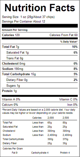 These Veggie Chips are made with spinach, tomato and potato flavor and are lightly coated with ranch seasoning for a delicious alternative to ordinary potato chips. Veggie chips contain no trans fats or cholesterol and can be enjoyed as a snack or paired with your favorite dips.