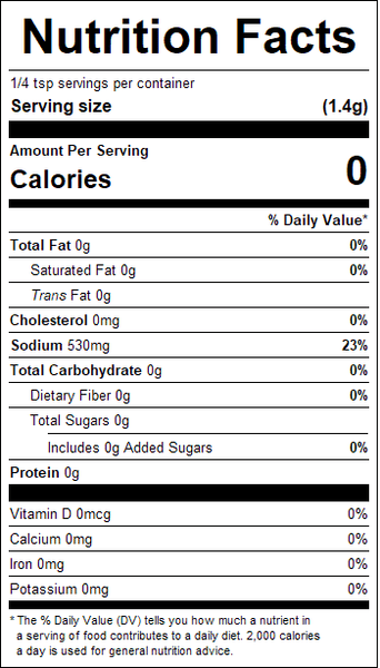 "ingredients": "All Natural Mineral Rock/Sea Salt.",