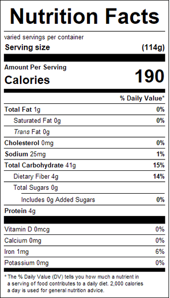 "recipe": "3 tbsp. veg. oil <br />2 cups water or broth <br />1 cup rice <br />salt & pepper to taste <br /><br />Place rice and oil in large saucepan. <br />Fry on med. high heat stirring constantly <br />until lightly browned. Carefully add the <br />liquid. Bring to a boil and reduce heat to <br />low. Cover and let simmer 35-40 minutes. <br />Do not stir. Turn heat off and let steam for <br />15 minutes. Fluff with a fork and serve. <br /><br />Product information/materials may change. <br />Refer to the package or call for updates.",