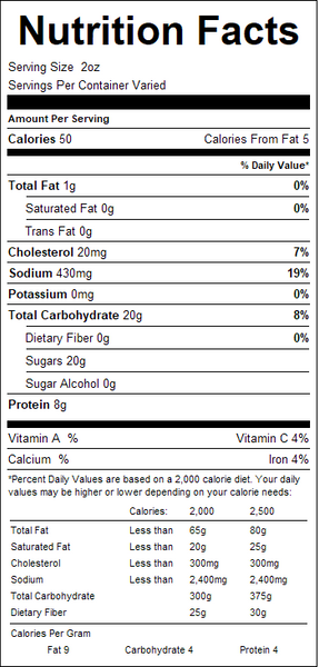"ingredients": "Cured with: water,salt, sugar, sodium, tripolyphosphate.Mailose. Rubbed with: soy sauce powder (soybeans, wheat, salt, maltodextrin, sodium bensoate) Garlic, onion, paprika, salt, sugar, citric acid, Natural Flavorings.",