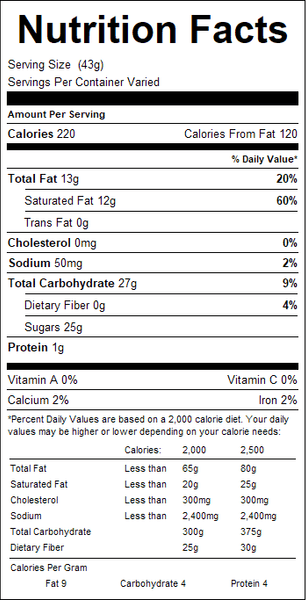 "ingredients": "Sugar, Hydrogenated Vegetable Oil (Palm Kernel And/Or Palm), Whey, Cocoa (Processed With Alkali), Lactose, Skim Milk, Soy Lecithin (Emulsifier), And Vanillin (Artificial Flavor). Contains: Milk And Soy. Manufactured On Equipment Which Processes Wheat, Peanut Butter, And Almonds.",
