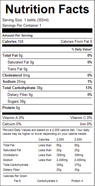 "ingredients": "Triple-filtered carbonated water, pure cane sugar, caramel color, citric acid, sodium benzoate (a preservative), natural and artificial flavor, acacia and yucca extractives. Contains no caffeine - very low sodium.",