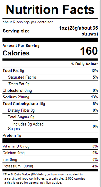 These stix are made from a blend of fresh vegetables, providing a colorful and appealing assortment in every package. The taste is a perfect balance of light and savory, with each stix delivering a burst of natural vegetable flavors. Lightly seasoned to enhance their inherent taste, these veggie stix are versatile and can be enjoyed on their own or paired with a variety of dips.