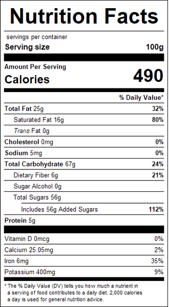 "ingredients": "Sugars (sugar, dextrose)., Unsweetened Chocolate, Cocoa Butter, Soy Lecithin, Vanilla Extract.May contain: Milk.",