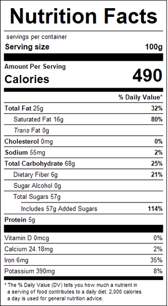 "ingredients": "Sugar, Unsweetened Chocolate, Cocoa Butter, Soy Lecithin (an emulsifier), Vanilla Extract.May contain milk.",