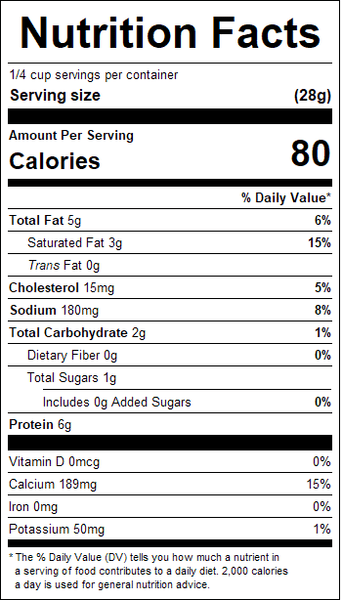 "ingredients": "Pasteurized Part-Skim Milk, Cheese Culture, Salt, Enzymes. Anti-Caking Blend (Potato Starch, Corn Starch, Calcium Sulfate, Natamycin [Mold Inhibitor]).<br /><br />Contains: Milk",