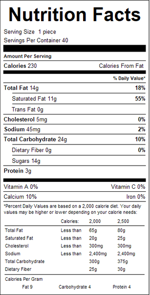 "ingredients": "White Coating (sugar, palm kernel oil, nonfat milk, milk, soy lecithin, salt, artificial flavor).",
