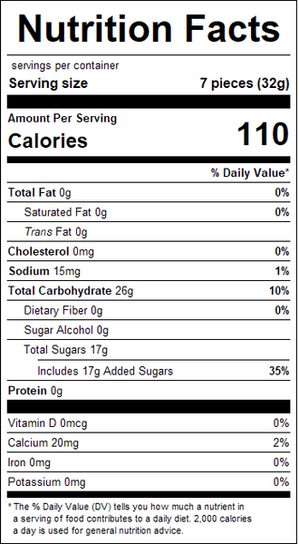 "ingredients": "Sugar, Corn Syrup, Modified Food Starch, Fumaric Acid, Lactic Acid, Citric Acid, Natural and Artificial Flavor, Sodium Citrate, Artificial Colors (including FD&C yellow #6, red #40, yellow #5 and blue #1).Manufactured in a facility that processes product containing egg, soy, milk, wheat, peanut and tree nut (almonds, pecans and brazil nuts) ingredients.",