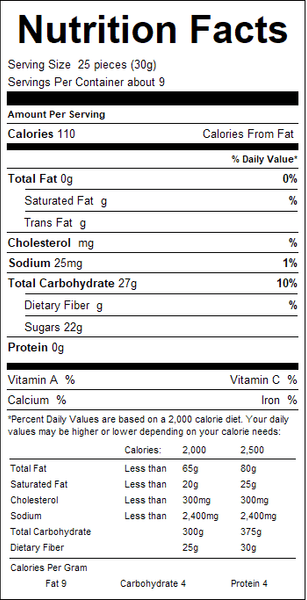 "ingredients": "Sugar, Corn Syrup, Cornstarch, Modified Cornstarch, Citric Acid, Contains less than 2% of Natural and Artificial Flavor, Confectioner's Glaze (shellac), Carnauba Wax, Beeswax, Gum Arabic, Sodium Citrate, Yellow 6, Yellow 5, Red 40, Blue 1.",