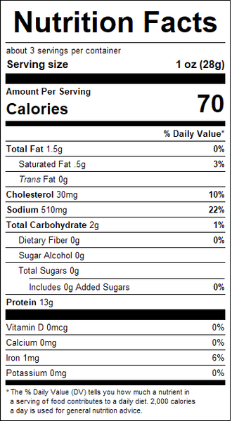 Gold Rush Spicy Beef Jerky is an excellent Low Fat, Low Carb source of High Protein. A 1 oz. stick contains less than 100 calories with only 2g of carbohydrates and it tasted great!