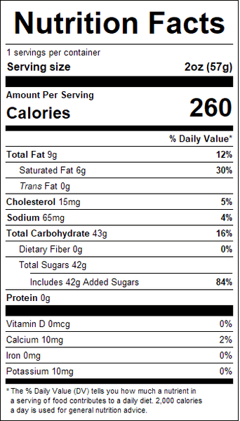 "ingredients": "Sugar, Cream, Butter, Palm Oil, Cream Cheese (pasteurized cultured milk and cream, salt, stabilizers [xanthan, locust bean, and guar gums], Corn Syrup Solids, Brown Sugar, Key Lime Juice, Potassium Sorbate (preservative), Salt, Yellow #5, Blue #1, Malic Acid, Natural Flavors.Contains milk.Processed on shared equipment processing peanuts, tree nuts, milk, eggs, soy, sulfites, and wheat.",