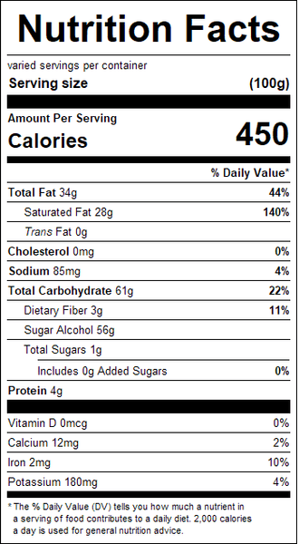 "ingredients": "Lactitol (Milk) (A Sweetener); Palm Kernel Oil; Maltitol (A Sweetener); Cocoa Powder Processed With Alkali; Partially Defatted Peanut Flour; Peanuts; Hydrogenated Palm Oil; Palm Oil; Soy Lecithin; Salt; Vanillin (Artificial Flavor); Hydrogenated Vegetable Fat (Palm); Acesulfame K; Tbhq (A Preservative); Citric Acid. Contains: Milk, Peanuts, Soy.",