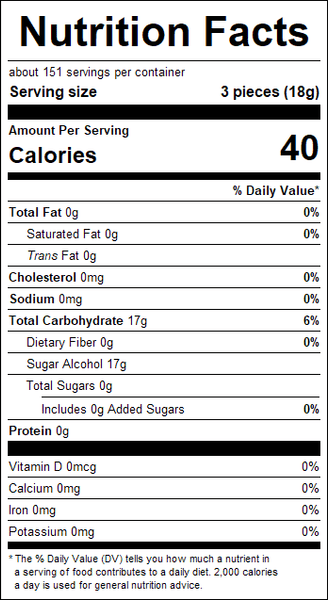 "ingredients": "Isomalt, Maltitol Syrup, Citric Acid, Artificial Flavor, Sucralose, High Oleic Sunflower Oil, FD&C Red #40, FD&C Blue #1.",