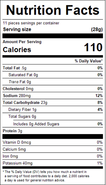 "ingredients": "Choice Blended Wheat Flour, Vegetable Shortening (Contains One Or More Of The Following: Corn, Canola, Cottonseed, Sunflower, Soybean Oil), Malt Syrup, Corn Syrup, Yeast, Salt And Soda.Contains: Wheat, Milk*, Soy* and Sesame*.<br /><br />Made with Bioengineered Ingredient(s).",