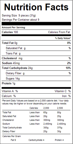"ingredients": "Corn Syrup, Sugar, Water, Gelatin, Modified Food Starch, contains 2% or less of Lactic Acid, Fumaric Acid, Citric Acid, Sodium Citrate, Sodium Lactate, Color Added, Calcium Lactate, Natural and Artificial Flavors, Red 40, Yellow 5, Yellow 6, Blue 1.",