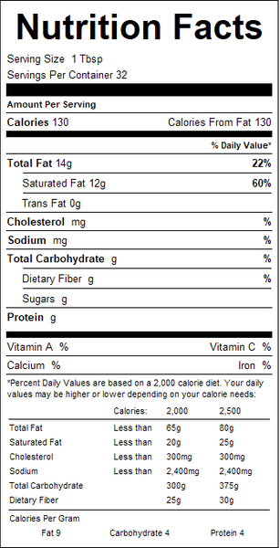 This virgin, cold-pressed, Non-GMO Project Verified, USDA Certified Organic Coconut Oil is rich in vitamins, minerals and fatty acids. In addition to being good for cooking, it has many healing properties and is great for use as a dietary supplement or as a moisturizing lotion for use in skin and hair care.