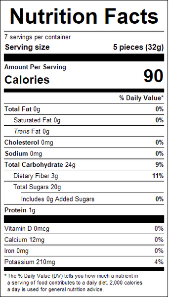 Pitted Dates are a low calorie and nutrient rich fruit, making an excellent snack as well as a versatile ingredient in recipes for cookies, cakes, muffins and breads.