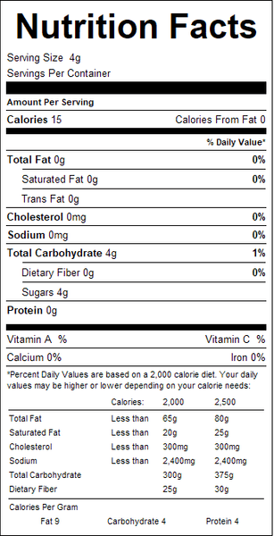 "ingredients": "Sugar, Corn Starch, Confectioners Glaze, Carnauba Wax and FD&C Yellow #5.",