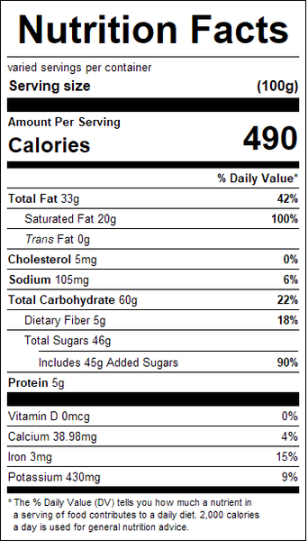 This coating is made from the finest blend of chocolate liquors, with the addition of sugar, cocoa butter and pure vanilla.